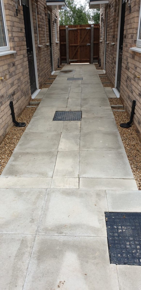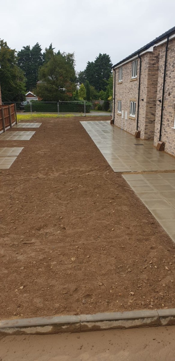 Our extensive experience in groundworks helped us to secure another great project on a new build site in Bourne in Lincolnshire. It is a perfect example of how to lay garden slabs.